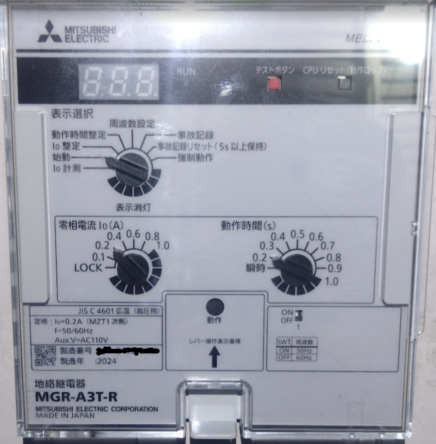 三菱製無方向性地絡継電器(MGR-A3T-R)についてのまとめ