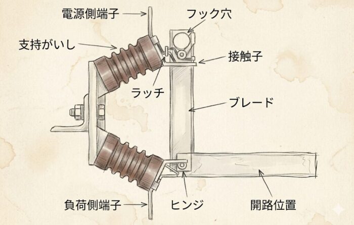 電流が流れている状態で断路器を開放すると、接点間に強力な「アーク放電(火花)」が発生し