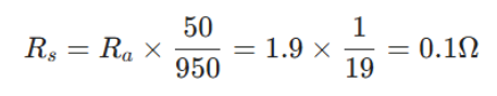 接続する分流器の抵抗値 Rs は以下の式で求められる。