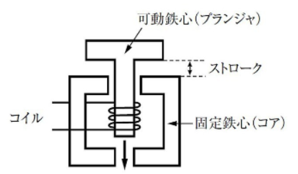 - 可動: その磁力によって、内部の鉄心(プランジャー)が吸い寄せられる。