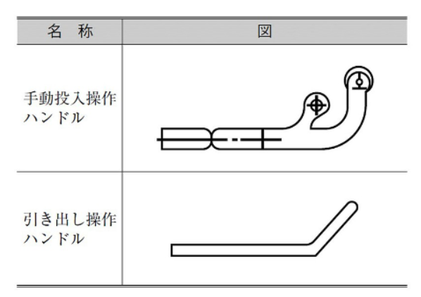 上右図:手動投入ハンドル挿入口と投入操作方法