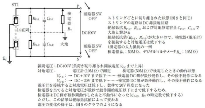 このことは接続されているストリングの数によっても絶縁抵抗と対地静電容量Cは変化するので