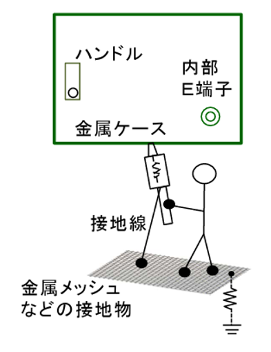 2)作業者と金属部間に電位差がないことを確認する