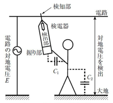 検電器は、電線や電気機器に電圧がかかっているか(活電状態か)を