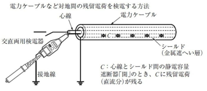 残留電荷は検電により交流の停電を確認した後、短絡接地することにより大地に放電される。
