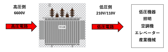 高圧受電設備の中で電気を使用するために設置される機器の中に