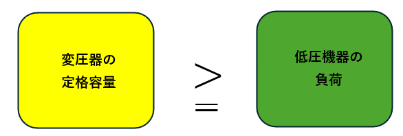 低圧機器の負荷が変圧器の定格容量を超えないようにする必要がある。