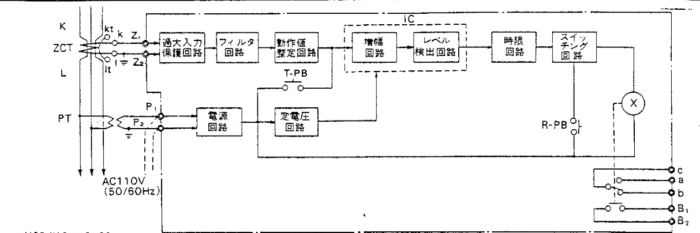 Z1,Z2:零相変流器二次出力電流を継電器内部回路への入力する端子