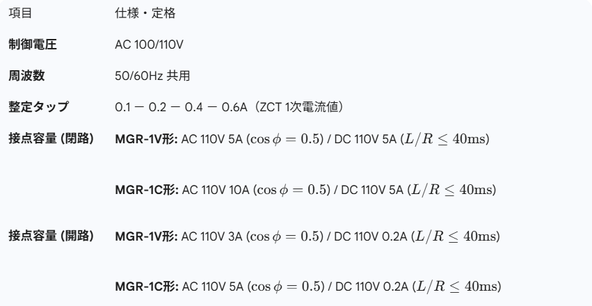 無方向地絡継電器 MGR-1V の仕様