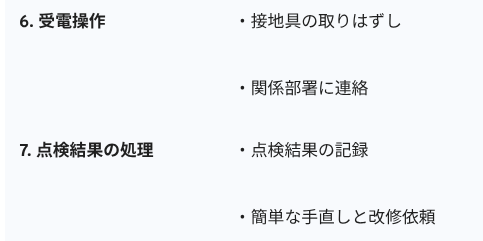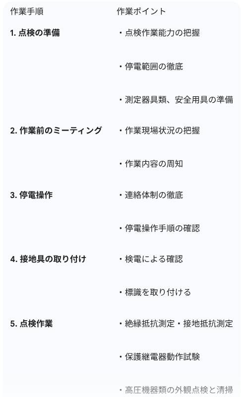 | 点検種別 | 頻度 | 内容の概要 | 停電の有無 |