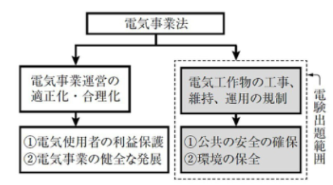 電験の出題範囲は、主に電気工作物の保安規制に関する部分。