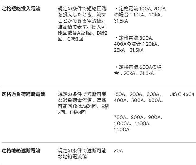 定格電流は定格短時間耐電流や定格短絡投入電流
