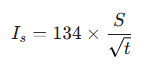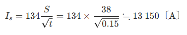 銅導体の場合の短絡時許容電流は、短絡前の導体温度を 90℃、短絡時の最高許容温度を 230℃とすると
