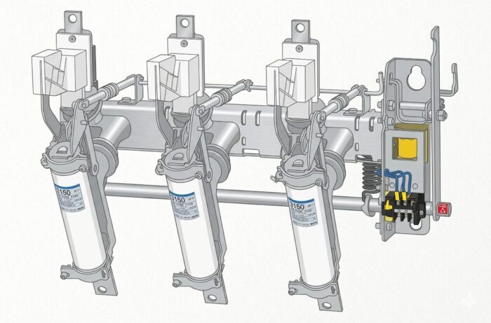 これにより、3相のうち1相だけヒューズが溶断した場合でも、他の相も同時に開放され、欠相事故を防止する。 - 操作機構