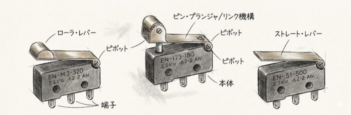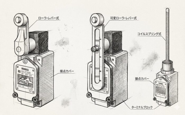 - 可変ローラ・レバー形: 取付位置に合わせてレバーの長さを調整したい場合に便利。