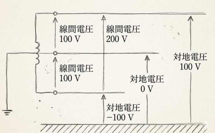 単相100V、三相200Vなどといえば線間電圧のこととなる。