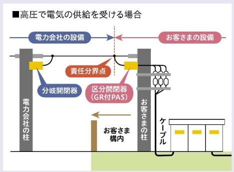- 電力会社と需要家の間で、電気設備の維持管理や保安責任を分ける境界となる点。