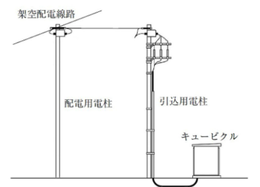 架空配電線路から地中ケーブルで引込む場合は下記図のようになる。