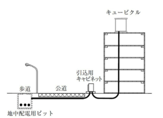 下記図のように地中ケーブルで引込む方式が採用される。