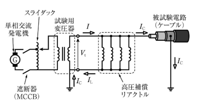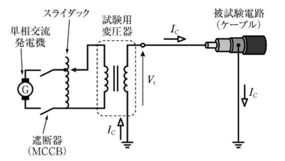 充電電流IC[A]が流れているため、試験用変圧器に要求される容量P[V ・A]は、