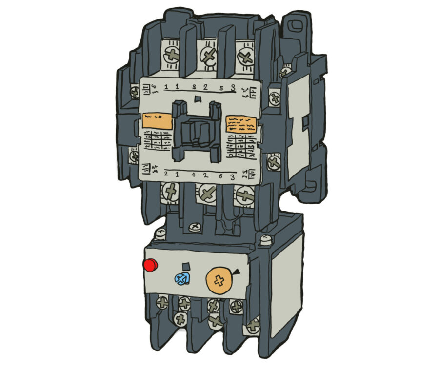 マグネットコンタクタは電磁石の力で、サーマルリレーは熱の力で接点を動作させる。