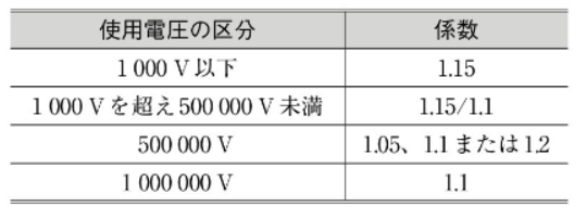 「1000 Vを超え500000 V未満」のときの「1.15/1.1」という係数を乗じればよいので、