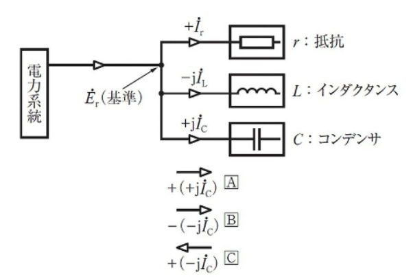 それぞれに受電端電圧 Erを基準にして電流の方向と位相関係を記している。