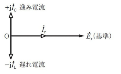 +(-j IC) となり、遅れ電流(-j IC)が発生源(コンデンサ)から電力系統へ流れ出るので