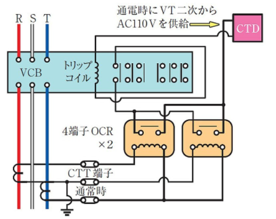 電圧引き外し型は、動作電源がOCR内部a接点により印加されてVCBが動作する。