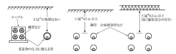そのほかの場合は0.6m以上の深さの位置に埋設されている必要がある。