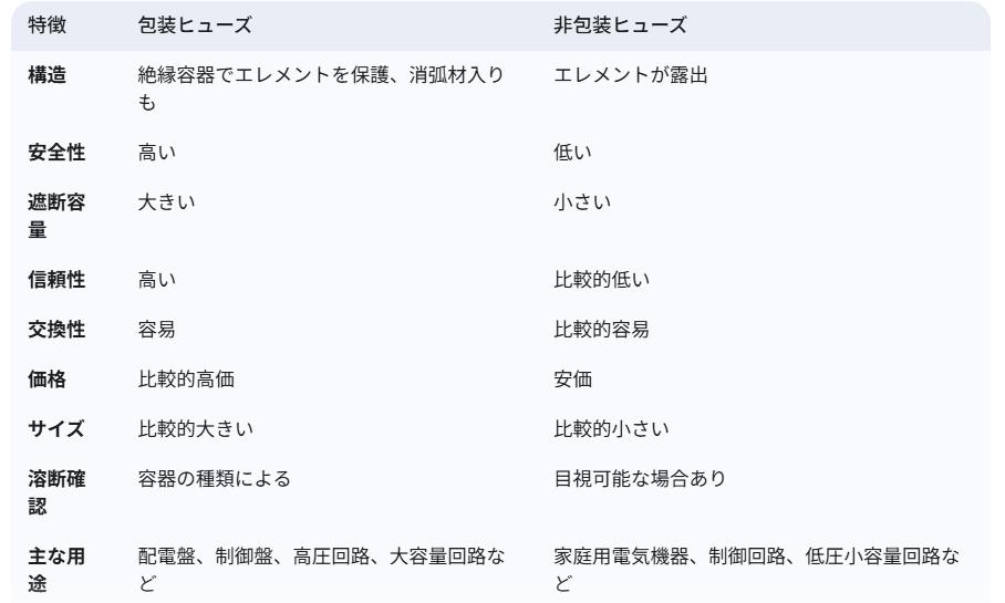 - アーク消弧: 包装された構造により、溶断時に発生するアーク(電気的な火花放電)が