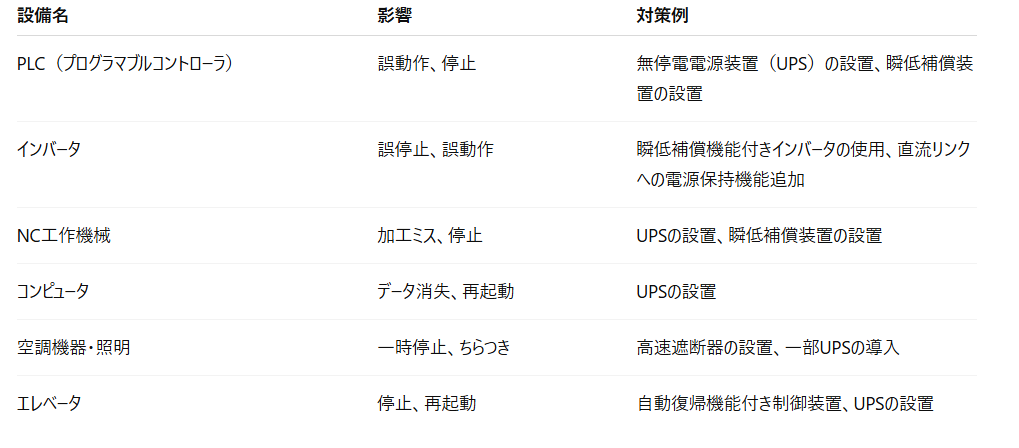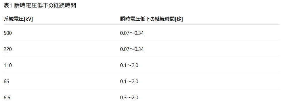 新電気 2018年 12月号 瞬時電圧低下の対策より一部引用