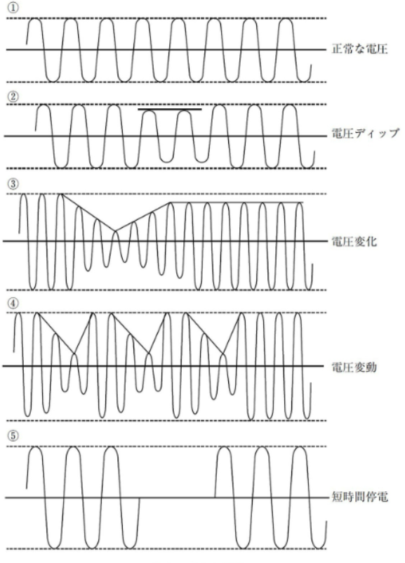 完全に電圧がゼロになる「停電」とは異なり、一瞬だけ電圧が下がってすぐに回復するのが特徴。