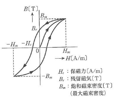 鉄のような磁性体にはヒステリシス特性がある(上図:ヒステリシスループ参照)。