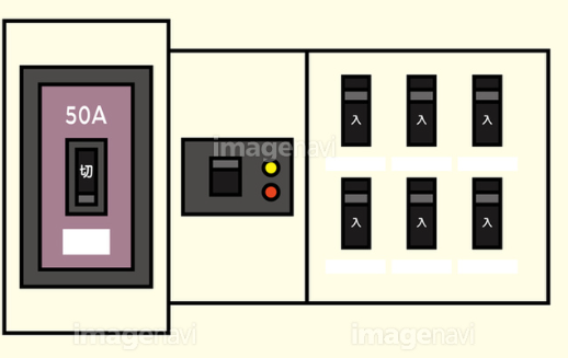 主幹ブレーカーとして分電盤全体を保護するものと、個別の回路を保護するものがある。 - トリップメカニズム
