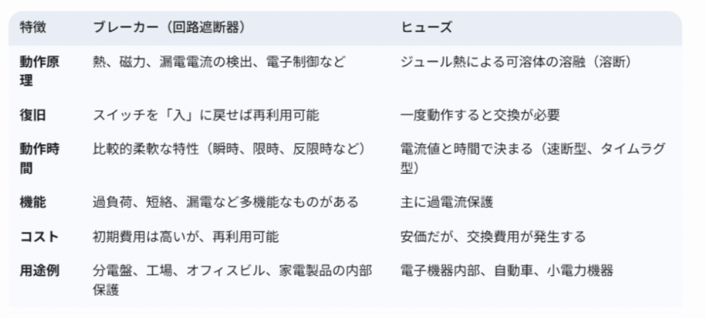 ブレーカーとヒューズは、電気回路を過電流から保護するための重要な安全装置。