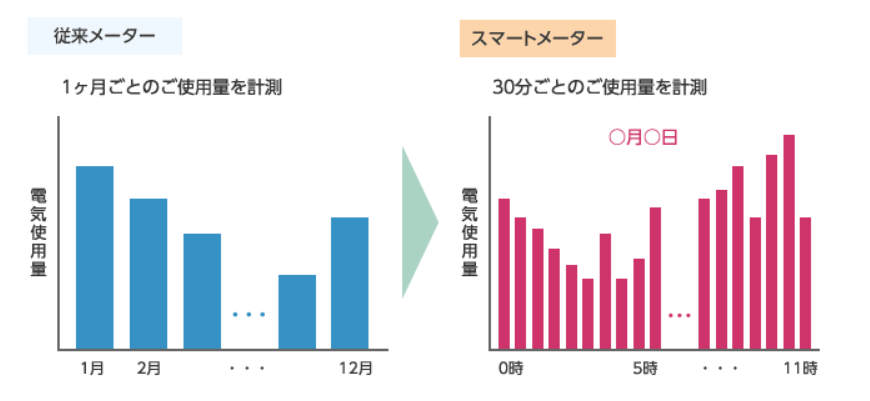 スマートメーターは30分ごとの電気使用量を詳細に計測し記録する。
