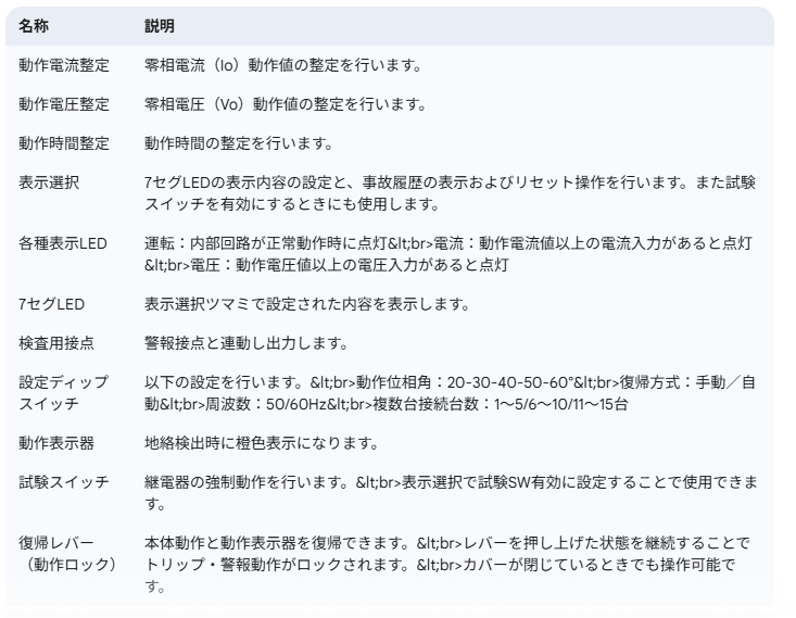- その他: 400%電流で整定値±10ms以内(ただし最小誤差は±50ms)