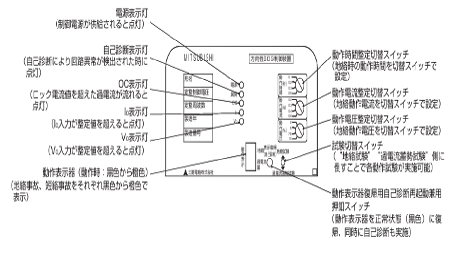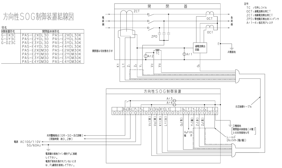 - 地絡事故時は、SOG制御装置(地絡継電器)が作動し、開閉器を開放させる。