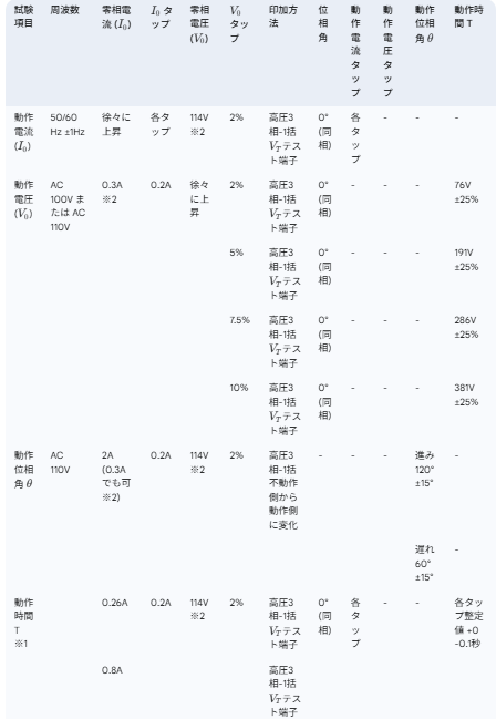 ※2. 整定値の150%。他のタップで実施の場合も同様、整定値の150%を印加すること。