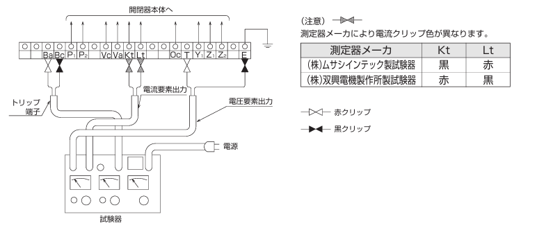 できるだけトリップコイルの線Va、Vcを外して試験されることをお勧めする。