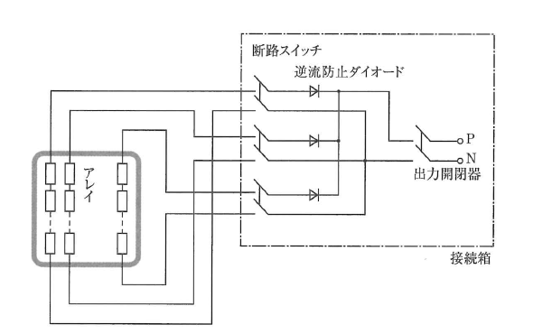 太陽光発電システムでは、通常、接続箱内やモジュール内部に組み込まれている。
