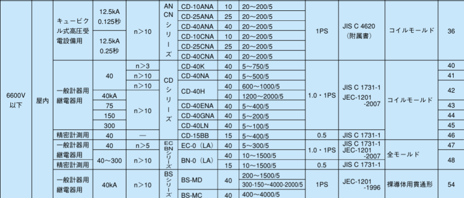 過電流定数(n)が重要となり、3.0級、1P級、3P級を選定する場合が多い。 - 電力量計(契約計量用)