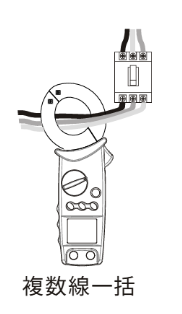 単相であれば2本(L相とN相)、三相であれば3本(U, V, W相)をまとめてクランプする。