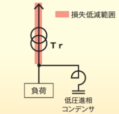低圧側に設置することで力率改善される範囲が長くなり、変圧器や低圧側配電線路の損失低減効果がある。