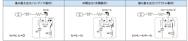 負荷の急激な変動や突入電流に対して、非常に高速に無効電力を供給・吸収できる。 - 連続的な調整