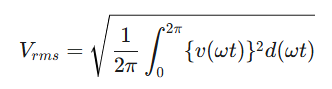 実効値 (Vrms) は、次式のように瞬時値の2乗の平均値の平方根で求められる。
