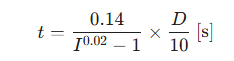 動作時間を tとしたときの動作時間特性式は次式のとおり。