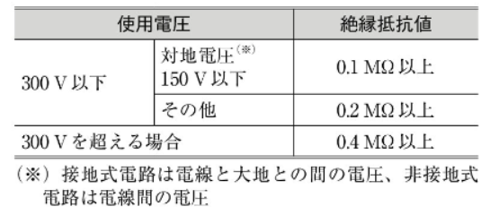 一般的に、法律などで定められた基準値(例えば低圧電路では0.1MΩ以上など)がある。 - 放電