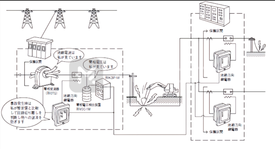 6600V系は非接地系であるため、配電線や需要家の高圧設備の地絡故障時には配電線や